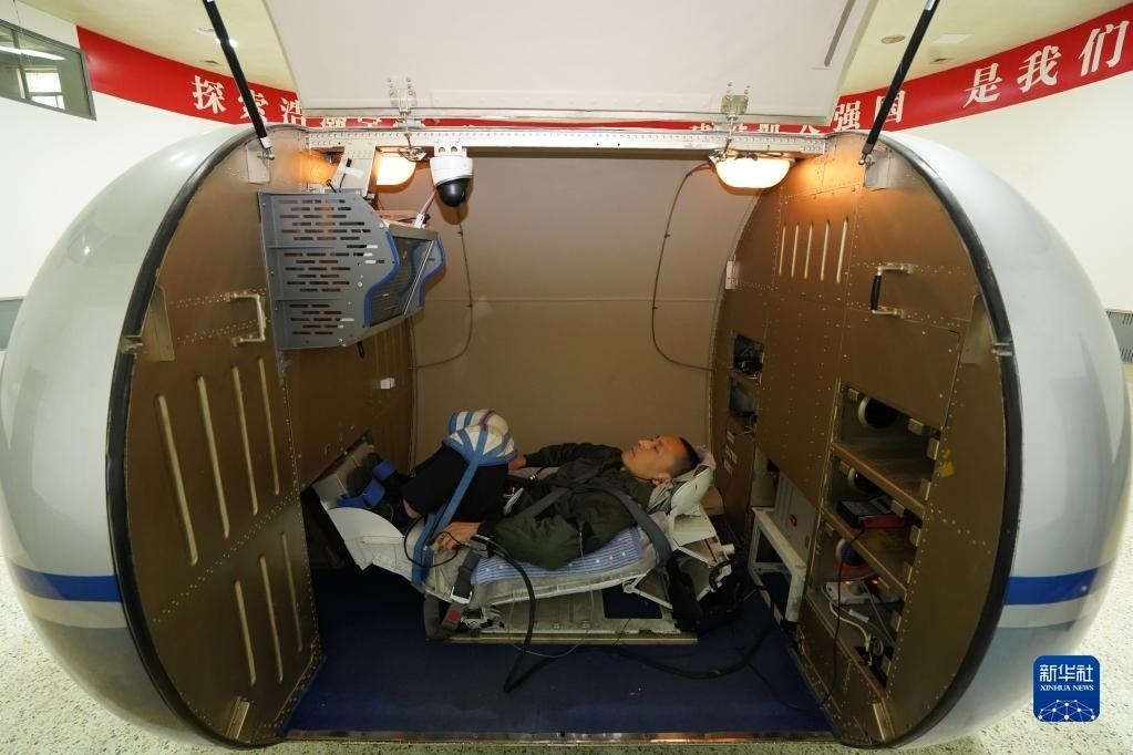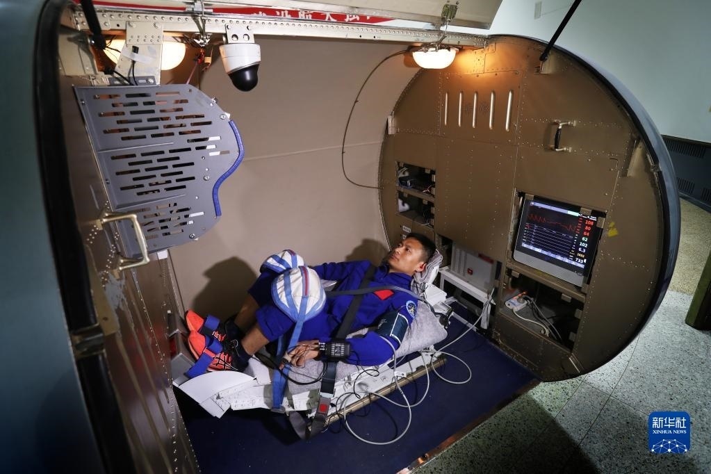 神舟十六號(hào)航天員桂海潮進(jìn)行離心機(jī)訓(xùn)練(2023年4月6日攝)。新華社發(fā)(徐部 攝)