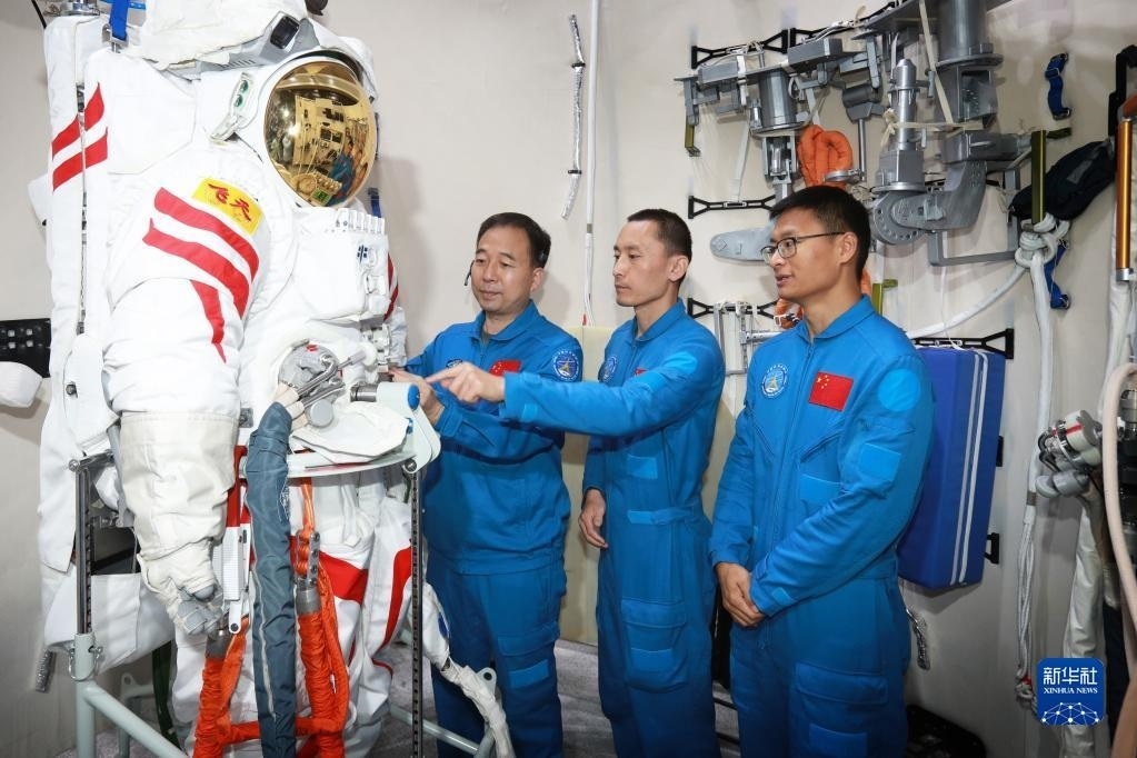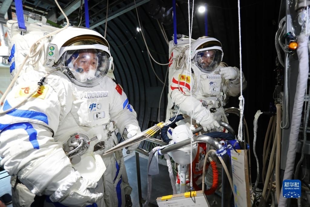 神舟十六號(hào)航天員乘組進(jìn)行航天服操作訓(xùn)練(2022年10月19日攝)。新華社發(fā)(徐部 攝)