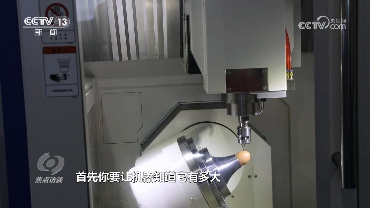 北京中關(guān)村精雕智造科技創(chuàng)新中心副總經(jīng)理?xiàng)铄i:“一個(gè)是識(shí)別,給機(jī)床安上了一雙眼睛,能知道雞蛋長(zhǎng)什么樣子;另外一個(gè)就是要求機(jī)床精度和穩(wěn)定性非常高,保證雞蛋永遠(yuǎn)刻不爛、刻不破。”