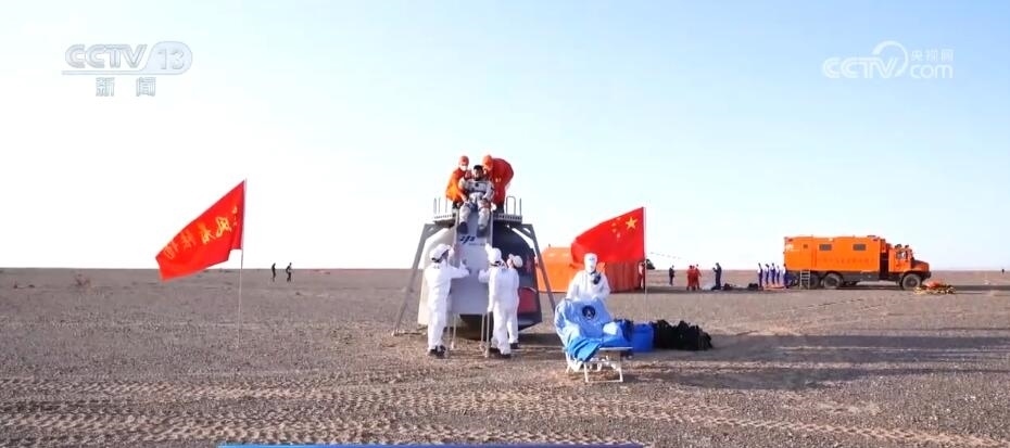 總臺(tái)記者 郭靜:在返回艙降落后處于直立狀態(tài)時(shí),我旁邊的這個(gè)操作平臺(tái)就發(fā)揮了大作用,它采用鎂鋁合金材質(zhì),相較之前更加輕便了,處置隊(duì)員從飛機(jī)降落后到搭建好操作平臺(tái)也就需要5分鐘左右的時(shí)間。除了輕便以外呢,它的滑梯坡度也更加平緩了,航天員下滑時(shí)也會(huì)更加舒適。