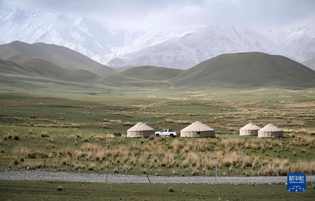 5月31日在新疆和田地區(qū)策勒縣昆侖山區(qū)拍攝的一處高山牧場景觀。新華社記者 胡虎虎 攝