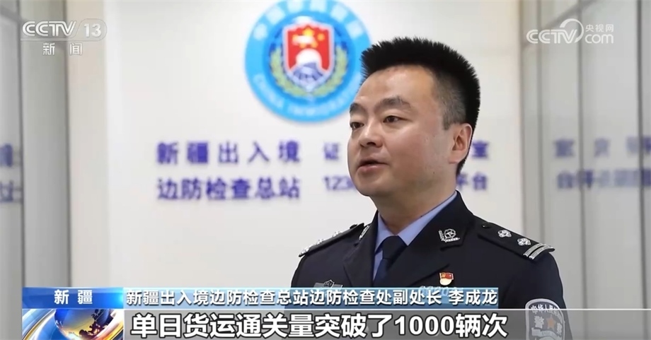 新疆出入境邊防檢查總站邊防檢查處副處長 李成龍:今年以來,霍爾果斯、阿拉山口等9個(gè)公路口岸通關(guān)量接連突破了歷史峰值,特別是霍爾果斯公路口岸,單日貨運(yùn)通關(guān)量突破了1000輛次。