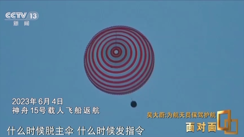 吳大蔚:通常大家都會(huì)覺得回來了很高興,不會(huì)有問題,其實(shí)不是的,首先返回是載人航天當(dāng)中比較危險(xiǎn)的環(huán)節(jié),什么時(shí)候脫主傘,什么時(shí)候發(fā)指令這些都有要求,所以所有這些其實(shí)這個(gè)壓力是比飛行當(dāng)中要更大一些。