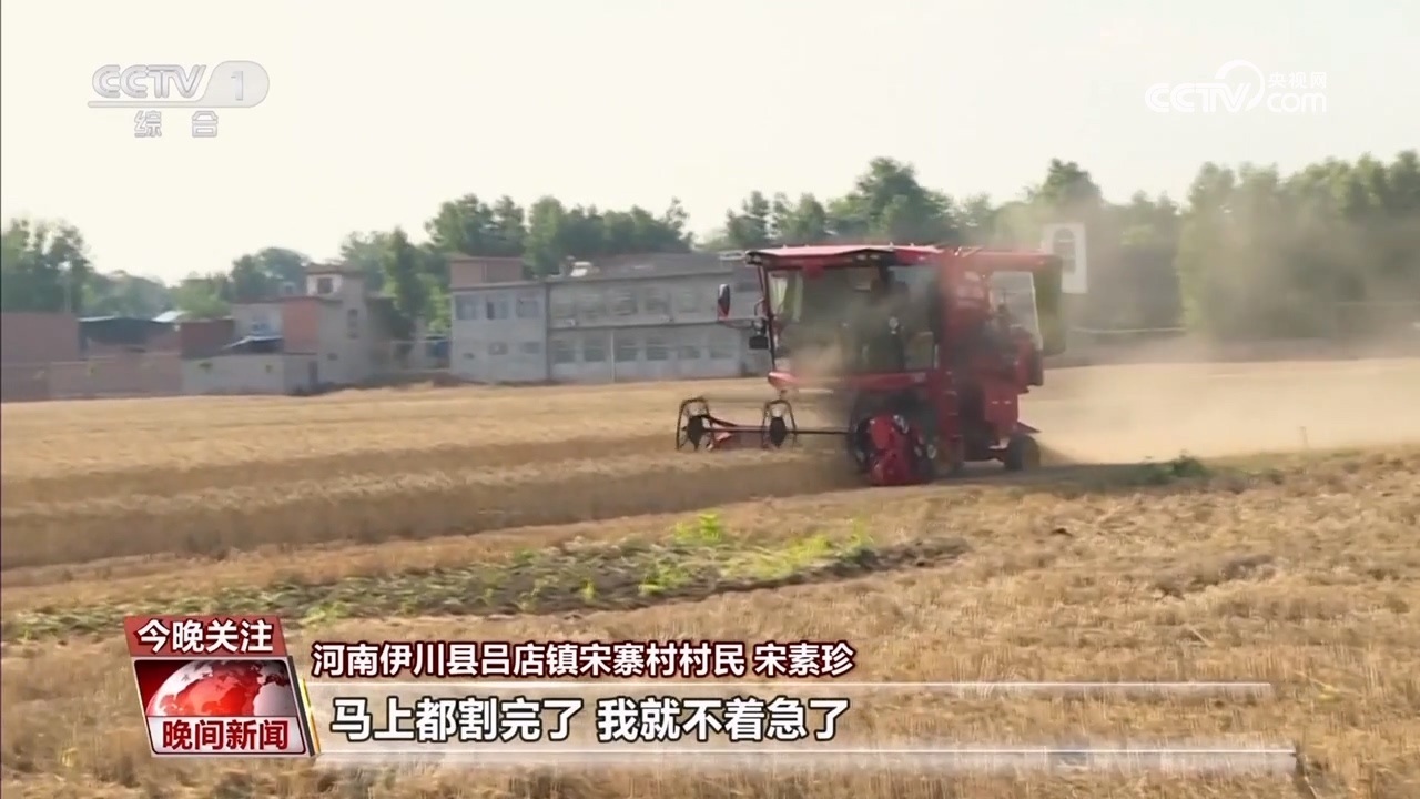 伊川縣呂店鎮(zhèn)宋寨村村民 宋素珍:前幾天下雨小麥收不回來,心里可心慌,鄉(xiāng)里派履帶式收割機,我這十幾畝地馬上都挨?。ㄝ喌剑┝?,馬上都割完了,我就不著急了。