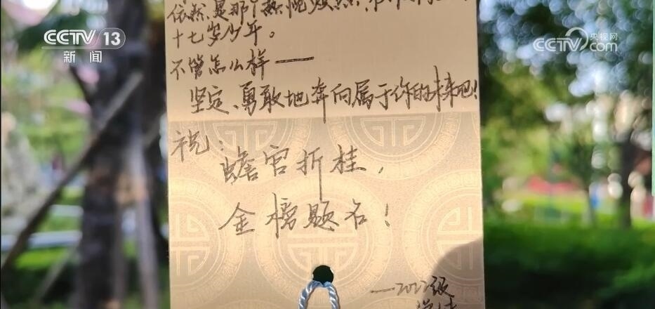 河南漯河市第四高級中學(xué)高三學(xué)生 趙晨辰:書簽里面有一句話我非常感動,“他強任他強,清風(fēng)拂山崗”。無論是順境還是逆境,都要堅持不懈,永遠(yuǎn)不能放棄。我希望承載著這份祝福,能夠自信踏入考場,能夠書寫出我認(rèn)為最好的答卷。