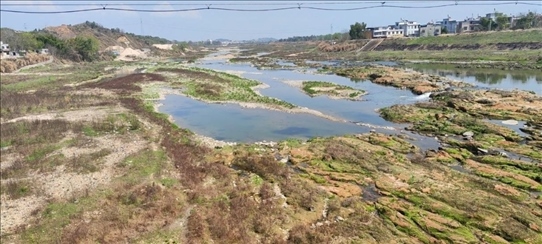 長江某支流一處采砂廠附近的河床。 (新華社記者董雪 攝)
