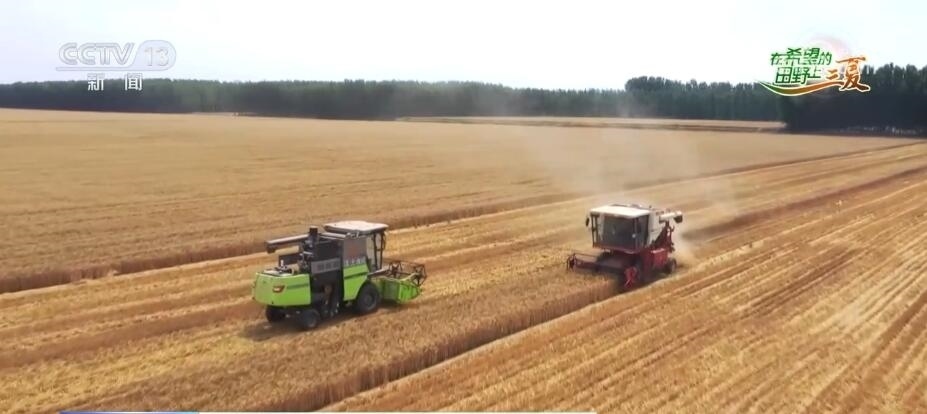 總臺(tái)央視記者 邵海成:我現(xiàn)在是在河南省西平縣,我身后是1萬多畝的小麥良種基地。當(dāng)?shù)卣{(diào)集10臺(tái)大馬力收割機(jī)參與小麥種子的搶收,每小時(shí)收割小麥400多畝。