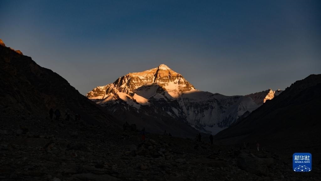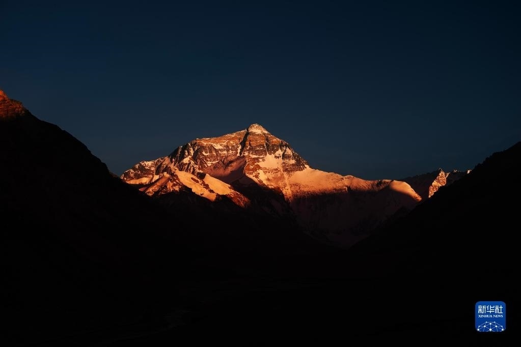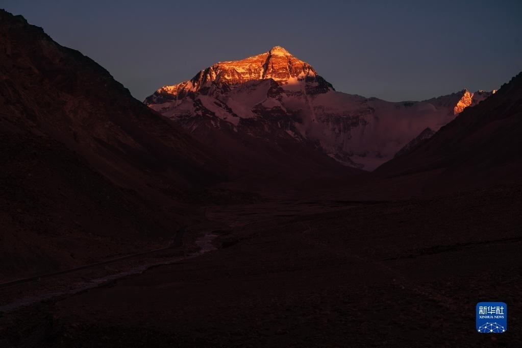巍峨的珠穆朗瑪峰屹立于青藏高原,珠峰地區(qū)氣候復雜,景色瞬息萬變?!皣乐?從雪山奔向大海”報道組在落日時分來到珠穆朗瑪峰腳下,記錄下世界之巔的“日照金山”壯美場景。
