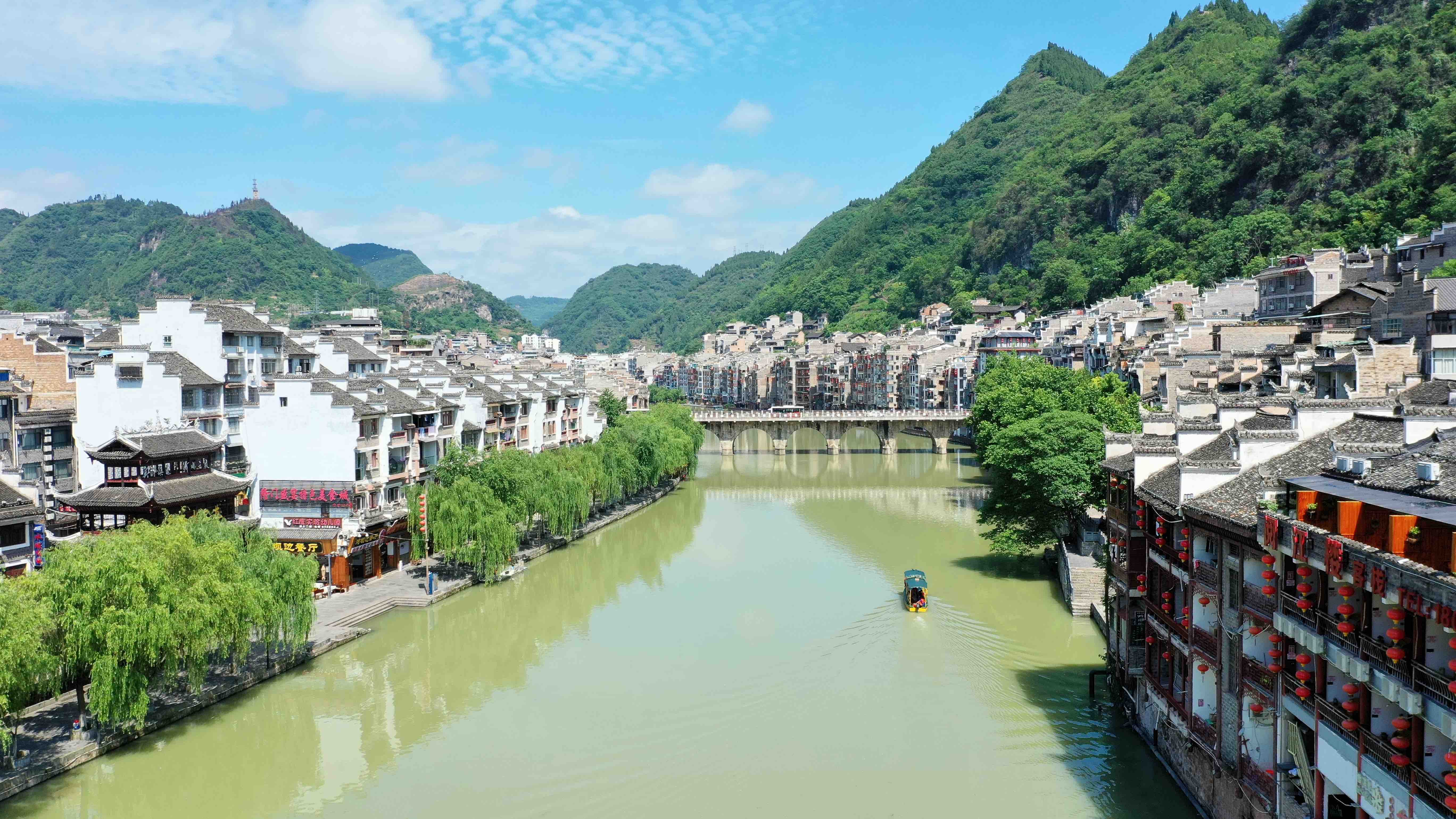 2023年6月7日,航拍貴州鎮(zhèn)遠(yuǎn),舞陽(yáng)河穿城而過(guò)。