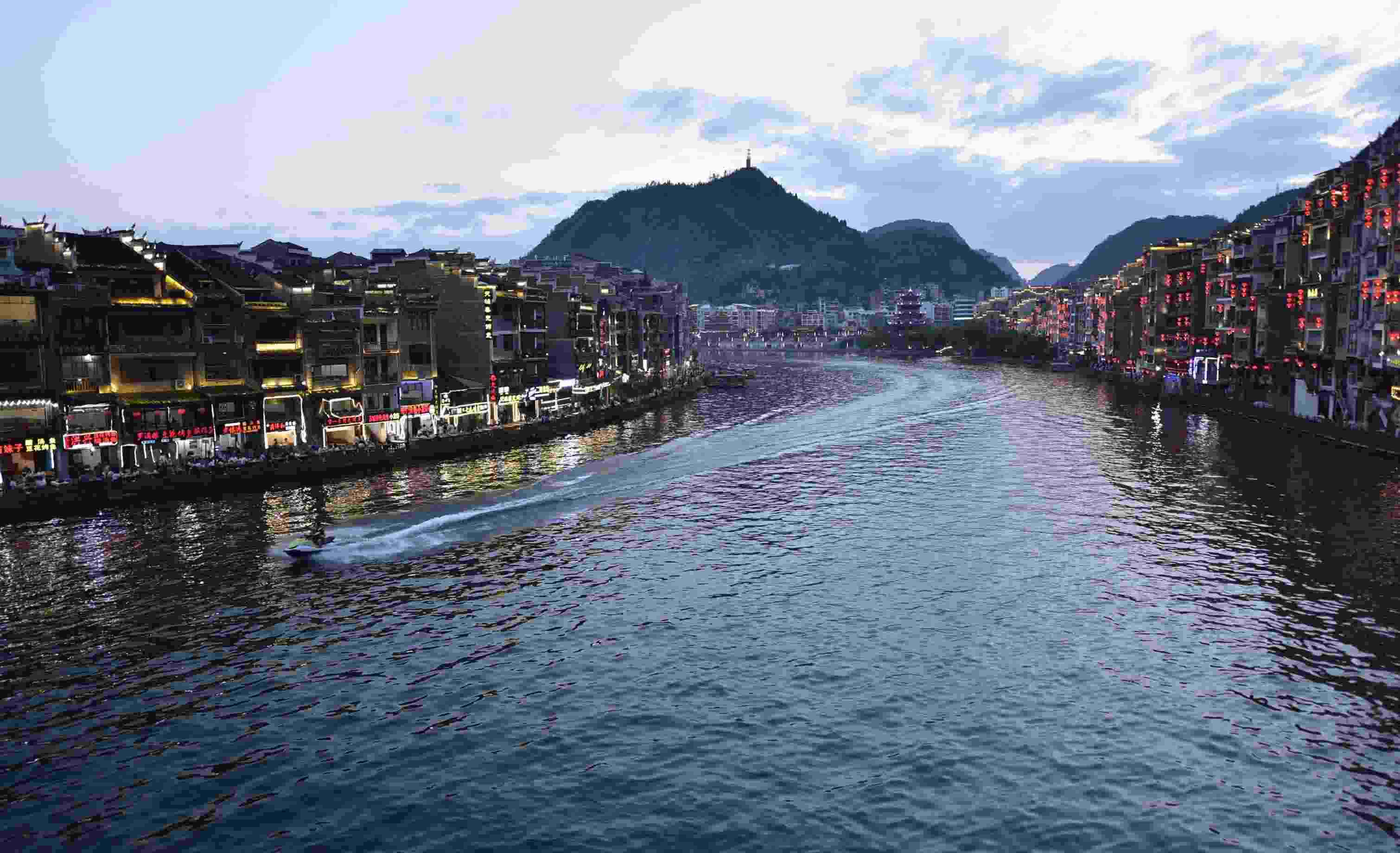 鎮(zhèn)遠(yuǎn)古城位于貴州省黔東南苗族自治州鎮(zhèn)遠(yuǎn)縣,據(jù)記載已有2280多年歷史。夜幕下的鎮(zhèn)遠(yuǎn)古城流光溢彩,璀璨奪目,宛如人間仙境。(寧堅(jiān) 吳昌軍)