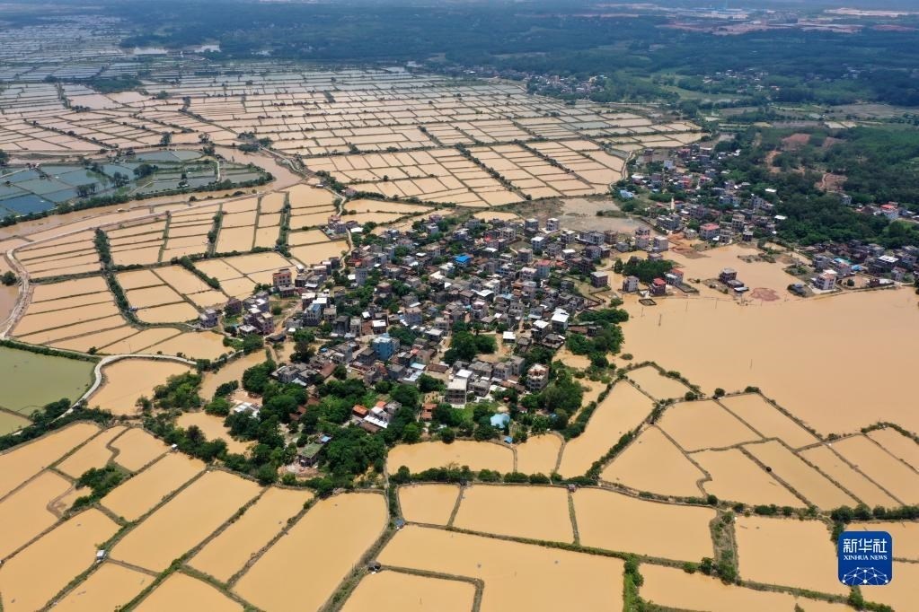 廣西合浦縣白沙鎮(zhèn)受強(qiáng)降雨影響的村莊(6月11日攝,無人機(jī)照片)。