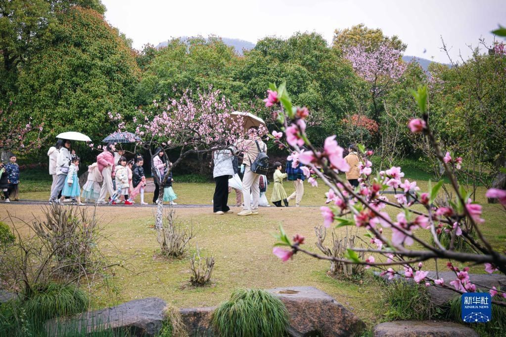 游客在浙江杭州丁蘭街道皋城村的桃園內(nèi)游園賞花(3月25日攝)。近年來,杭州丁蘭街道皋城村在改善村容村貌、建設美麗鄉(xiāng)村的基礎上發(fā)展鄉(xiāng)村旅游業(yè),促進鄉(xiāng)村文旅融合。新華社記者 江漢 攝