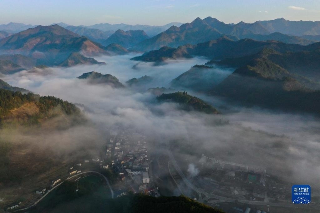 浙江杭州淳安縣屏門鄉(xiāng)風光(無人機照片,3月10日攝)。新華社記者 徐昱 攝