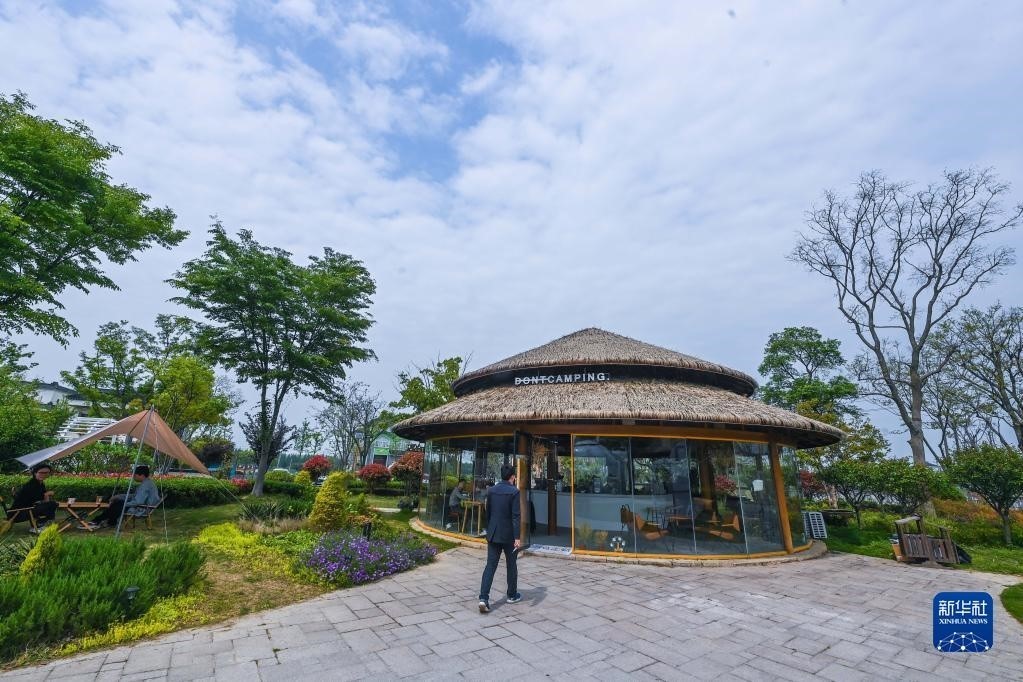 位于浙江湖州織里鎮(zhèn)伍浦村漁耕文化園的陶灣里鄉(xiāng)村咖啡店(4月11日攝)。近年來,織里鎮(zhèn)依托當?shù)孛利愢l(xiāng)村建設以及自然風光,招引鄉(xiāng)賢返鄉(xiāng)創(chuàng)業(yè),依托閑置民宅、閑置土地建設特色咖啡店、花海景觀、特色民宿和農(nóng)家樂等,發(fā)展鄉(xiāng)村旅游經(jīng)濟。新華社記者 徐昱 攝