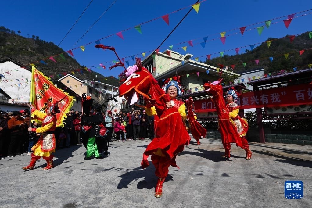 浙江杭州淳安縣屏門鄉(xiāng)屏前村傳統(tǒng)廟會上的竹馬表演(3月10日攝)。近年來,屏門鄉(xiāng)當?shù)貙⒚袼妆硌?、踏青賞春、農(nóng)家特產(chǎn)展賣等融入傳統(tǒng)廟會中,成為美麗山鄉(xiāng)的春季熱鬧“大戲”,助力鄉(xiāng)村文旅融合發(fā)展和共同富裕。新華社記者 徐昱 攝