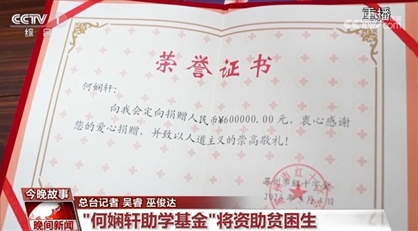 經(jīng)過(guò)安徽省紅十字會(huì)和江蘇省蘇州市紅十字會(huì)的聯(lián)系協(xié)調(diào),何嫻軒老人的善款最終被定向捐獻(xiàn)給她家鄉(xiāng)安徽省的天長(zhǎng)中學(xué),用于資助品學(xué)兼優(yōu)的貧困學(xué)生。