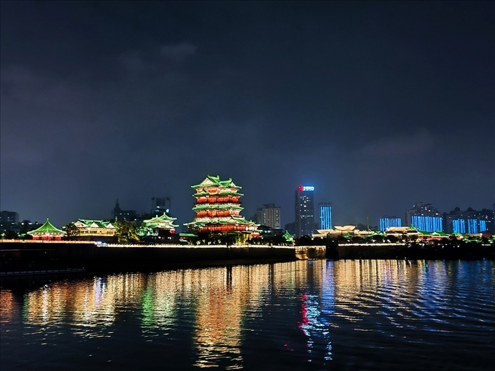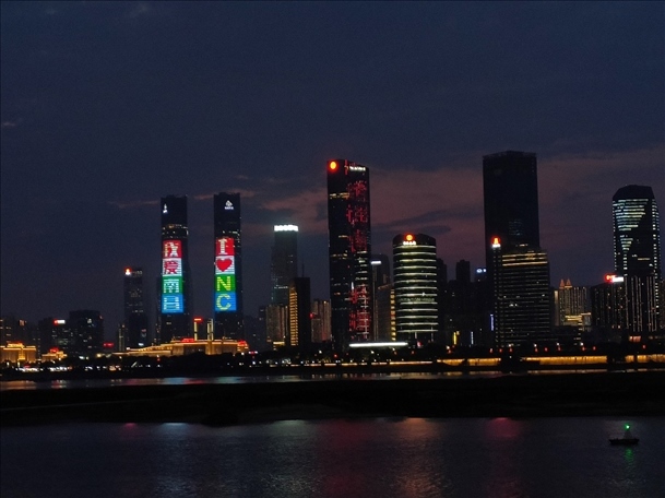 央視網消息(記者/楊雯珺):6月13日晚,南昌贛江兩岸點亮“一江兩岸燈光秀”,“e法治網 同心同行”的主題宣傳標語在南昌地標建筑綠地雙子塔滾動播放。兩岸燈火璀璨,助力全社會網絡普法的宣傳氛圍。