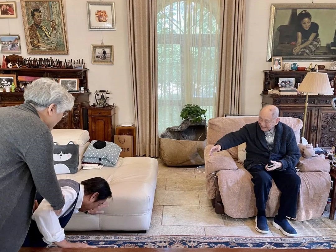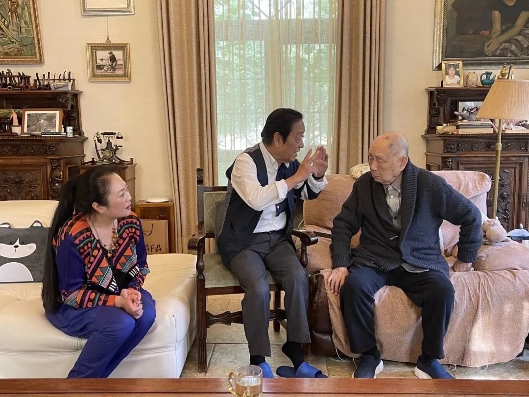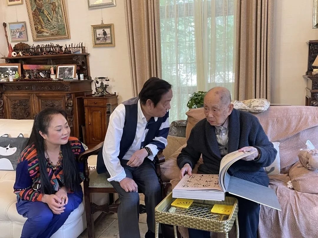 ▲2021年5月,韓美林周建萍夫婦最后一次探望黃永玉先生