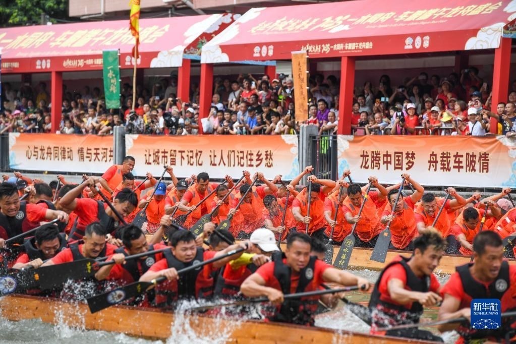 賽龍奪錦代表一種人生態(tài)度,更有著豐富的精神內(nèi)涵。對于車陂這樣的“城中村”而言,族人在端午回村里劃龍舟、吃龍船飯。龍舟如今既是留住文化記憶的重要載體,更是新都市如何留住老鄉(xiāng)愁的一份珍貴答卷。新華社記者 劉大偉 攝