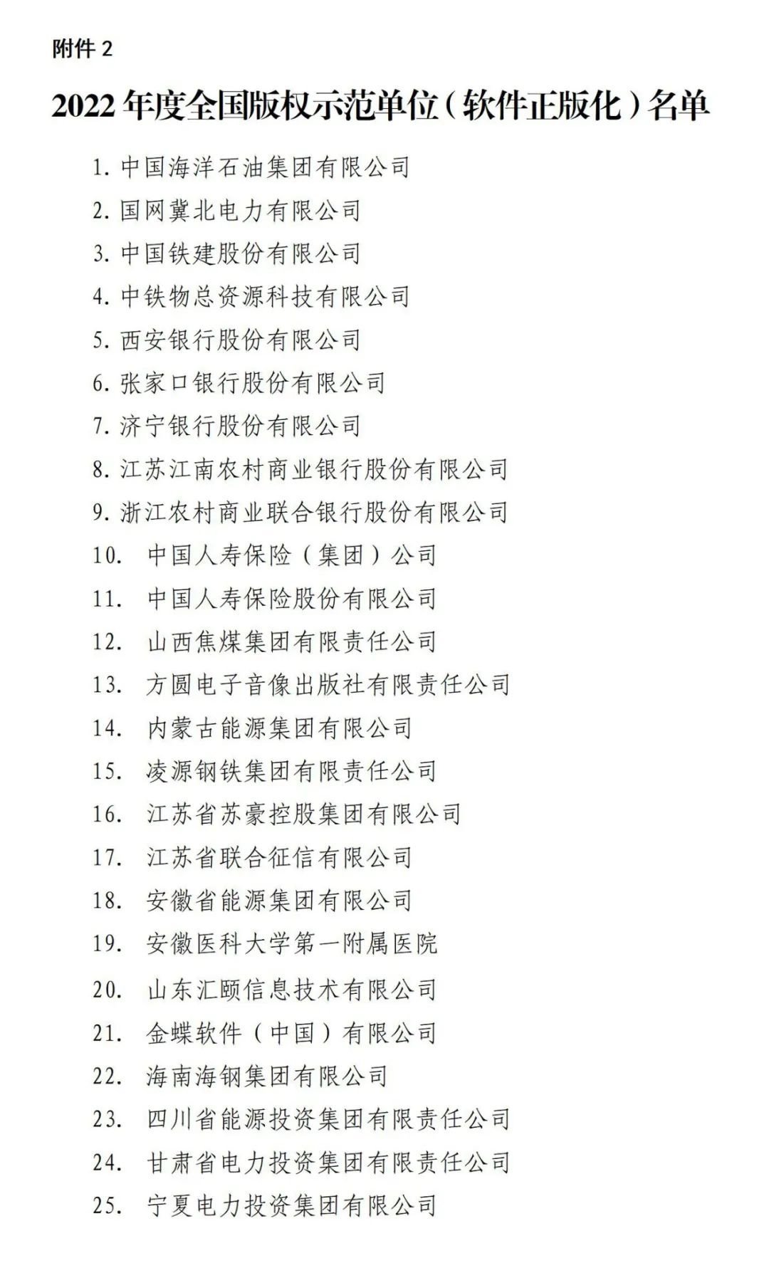 2.2022年度全國版權(quán)示范單位(軟件正版化)名單