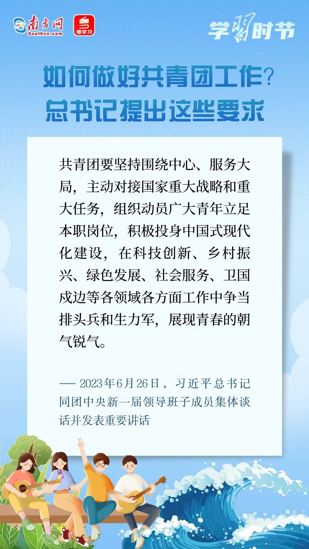 6月26日,習(xí)近平總書(shū)記同團(tuán)中央新一屆領(lǐng)導(dǎo)班子成員集體談話并發(fā)表重要講話。總書(shū)記強(qiáng)調(diào),黨和國(guó)家事業(yè)的希望寄托在青年身上。希望共青團(tuán)中央深入貫徹黨中央要求,切實(shí)肩負(fù)起新時(shí)代新征程黨賦予的使命任務(wù),傳承弘揚(yáng)優(yōu)良傳統(tǒng),堅(jiān)持改革創(chuàng)新,更好把青年一代團(tuán)結(jié)凝聚在黨的周圍,為推進(jìn)強(qiáng)國(guó)建設(shè)、民族復(fù)興偉業(yè)接續(xù)奮斗。