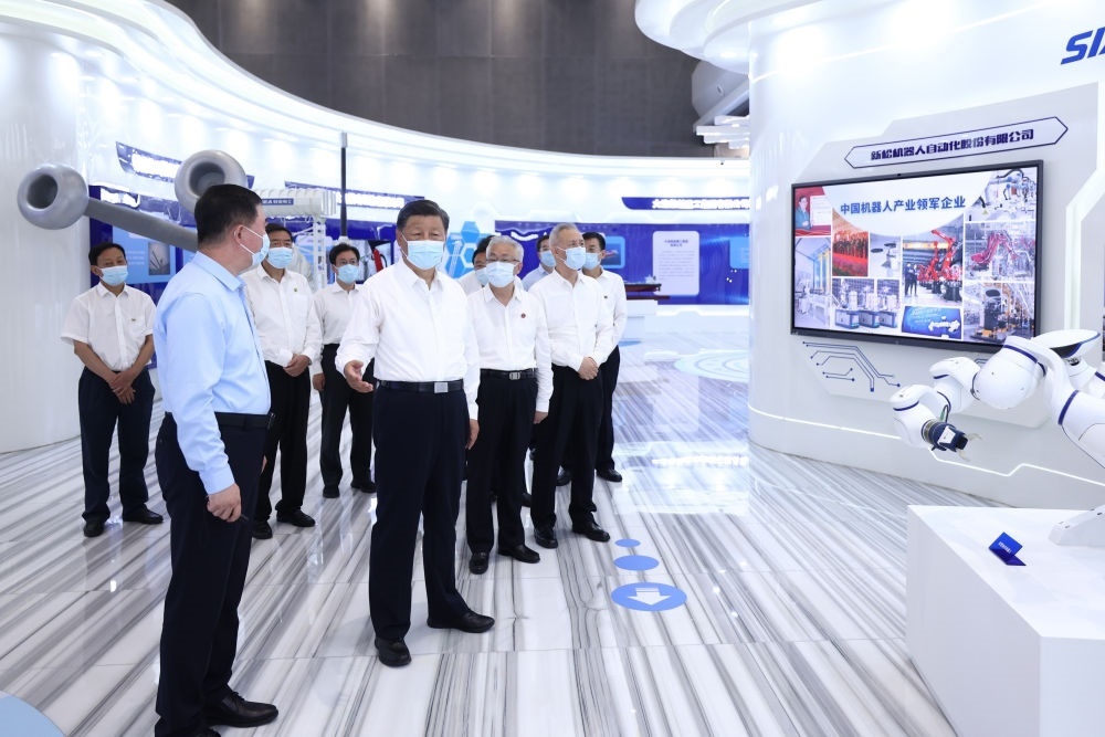 2022年8月17日下午,習(xí)近平在遼寧沈陽(yáng)新松機(jī)器人自動(dòng)化股份有限公司展廳,了解公司生產(chǎn)經(jīng)營(yíng)、自主創(chuàng)新情況。