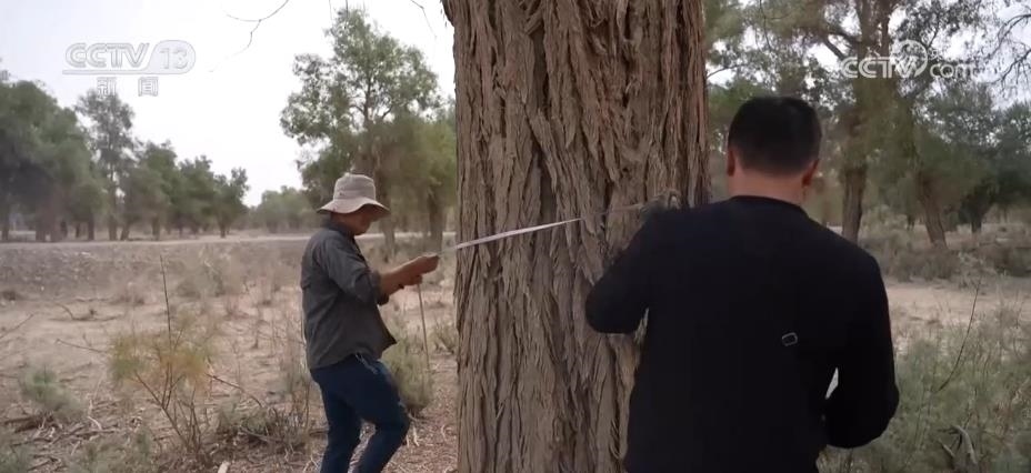 有人守護(hù)胡楊林的生長(zhǎng)環(huán)境,也有人專門記錄胡楊樹的生長(zhǎng)情況。在沙雅縣境內(nèi)的胡楊林里分布著很多超過(guò)百歲樹齡的胡楊樹,最近一段時(shí)間,新疆林業(yè)規(guī)劃院的科研人員正在對(duì)這里的胡楊林古樹群進(jìn)行調(diào)查建檔。