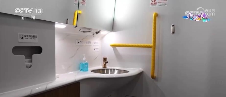 動車組的4號車廂為無障礙車廂,有無障礙衛(wèi)生間、輪椅存放區(qū),還有盲文標(biāo)識以及相應(yīng)的設(shè)施設(shè)備,為乘客提供無障礙出行服務(wù)。