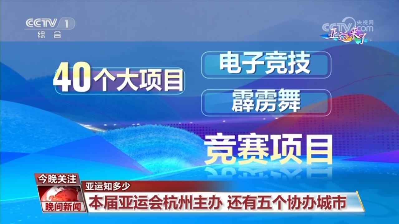 杭州亞運(yùn)會以杭州為主辦城市,寧波、溫州、湖州、紹興、金華為五個協(xié)辦城市。本屆亞運(yùn)會競賽項目在保持40個大項目不變的前提下,增設(shè)電子競技、霹靂舞兩個競賽項目。16個比賽日,預(yù)計共產(chǎn)生482枚金牌。?