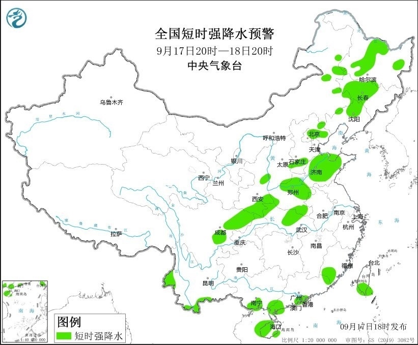 央視網(wǎng)消息:據(jù)中央氣象臺網(wǎng)站消息,中央氣象臺9月17日18時繼續(xù)發(fā)布強對流天氣藍色預(yù)警。預(yù)計9月17日20時至18日20時,內(nèi)蒙古東部、黑龍江南部和東北部、吉林中西部、遼寧中西部、陜西北部和中部、山西北部和東南部、河北東北部和南部、北京東北部、天津北部、山東西北部、河南中北部和東部、湖北北部等地的部分地區(qū)將有8-10級雷暴大風(fēng)或冰雹天氣,局地風(fēng)力可達11級以上;內(nèi)蒙古東部、黑龍江中西部、吉林中西部、遼寧西部和北部、陜西南部、河北東北部和南部、北京東北部、天津北部、山東中西部、河南北部和東部、湖北中部和西部、福建南部、四川盆地中東部、云南西部和南部、廣西南部、廣東西南部、海南島、臺灣島南部等地的部分地區(qū)將有短時強降水天氣,最大小時雨量20-50毫米,局地可達60毫米以上。