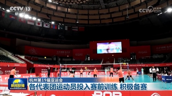 央視網(wǎng)消息(新聞聯(lián)播):距離杭州亞運會開幕還有兩天,已經(jīng)抵達參賽地的各國代表團運動員們積極備賽,認真開展賽前訓練,期待在杭州亞運會上勇創(chuàng)佳績。
