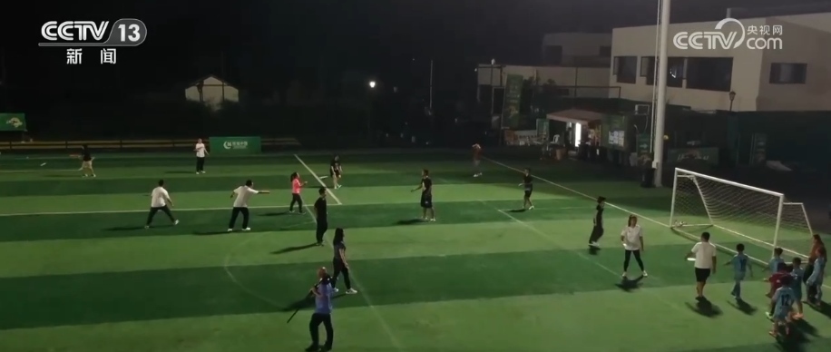 總臺記者 李欣蔓:新港村足球場占地約26畝,包含兩塊標(biāo)準(zhǔn)的11人制足球場。五六年前,這里還是一片被騰退的低小散企業(yè)所剩下的老廠房。2019年,村里建起了第一塊專業(yè)的運(yùn)動(dòng)場地。2023年以來,這里已經(jīng)承接了35場足球賽,各類包場活動(dòng)達(dá)到80多次。除了承接活動(dòng)和比賽,這塊場地還免費(fèi)向村民和散客開放。