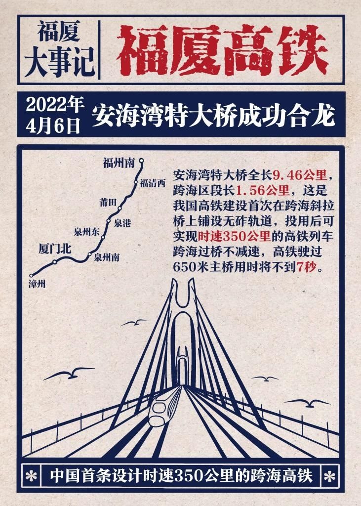 我國首條設(shè)計時速350公里的跨海高鐵——福廈高鐵正式開通運營