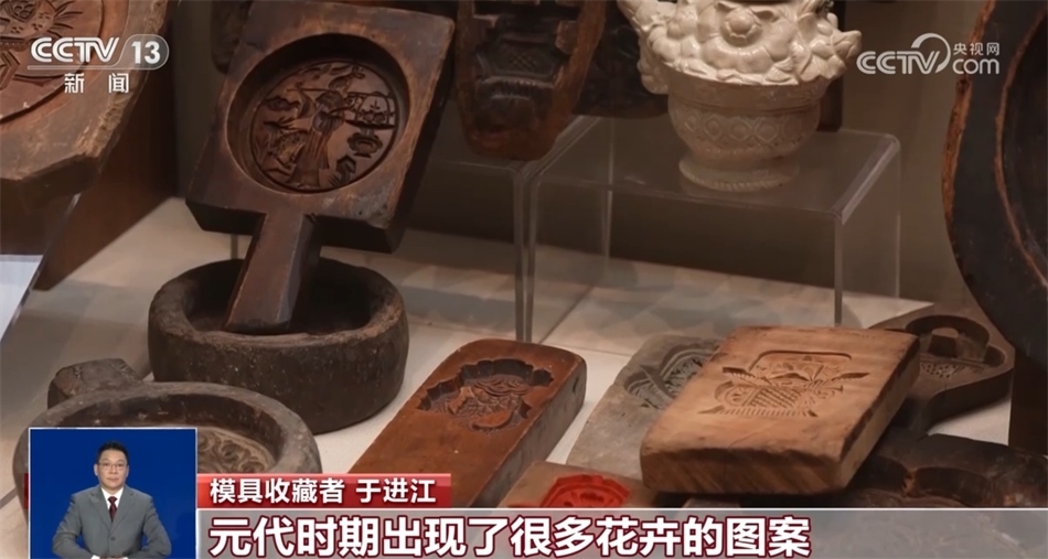 模具收藏者 于進(jìn)江:從宋代開始,我們會(huì)發(fā)現(xiàn)模具里面就出現(xiàn)了玉兔搗藥的造型;元代時(shí)期出現(xiàn)了很多花卉的圖案;到了明代時(shí)期,加入了很多題材,有期盼中秋節(jié)蟾宮折桂的,有祝壽團(tuán)圓的;清代時(shí)期,(出現(xiàn)了)很多故事圖案月餅。