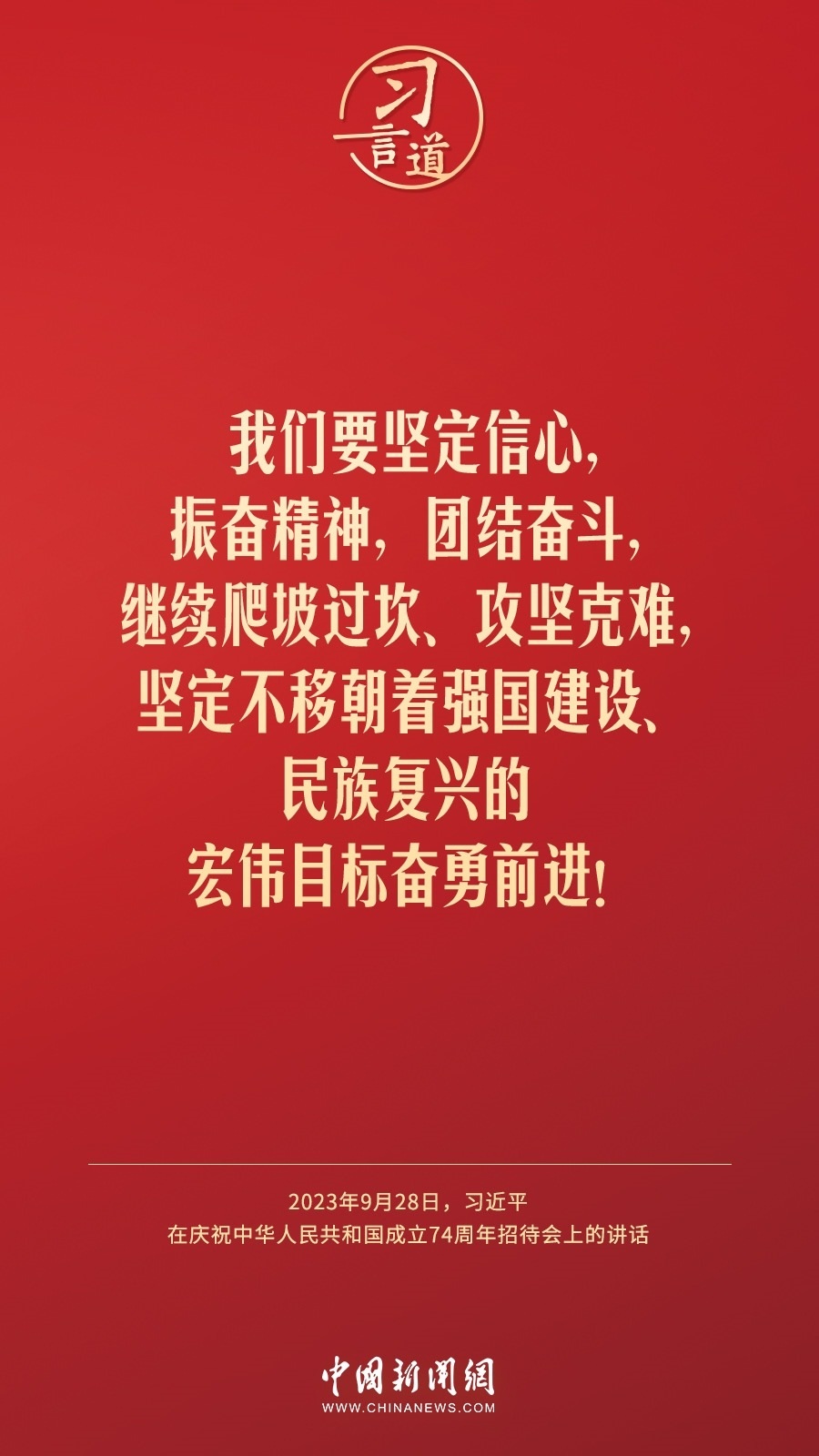慶祝中華人民共和國(guó)成立74周年招待會(huì)28日晚在人民大會(huì)堂舉行。中共中央總書(shū)記、國(guó)家主席、中央軍委主席習(xí)近平出席招待會(huì)并發(fā)表重要講話。他強(qiáng)調(diào)——