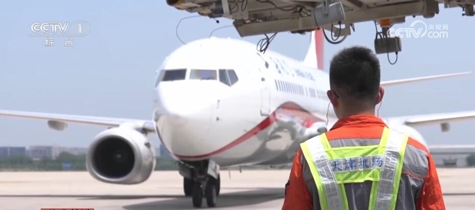 天津?yàn)I海國際機(jī)場有限公司地勤部機(jī)務(wù)分部副主任 王凱:現(xiàn)在暑期也快到了,旅客出行也會(huì)越來越多,為了保障旅客安全和飛行安全,就算天再熱,我們也會(huì)堅(jiān)守住自己的崗位,做好本職工作,保障飛機(jī)適航。