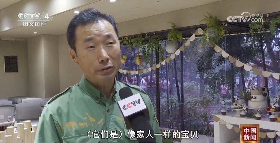愛寶樂園熊貓館飼養(yǎng)員 姜哲遠(yuǎn):我們的“寶”家族真的有家人的感覺,首先愛寶、樂寶、福寶的名字都是有含義的,就像它們名字的意思一樣。它們是可愛,又給我?guī)砜鞓返膶毼铩⒖蓯鄣膶毼?,還有幸福的寶物。對(duì)我來說,就像它們的名字一樣,(它們是)像家人一樣的寶貝。