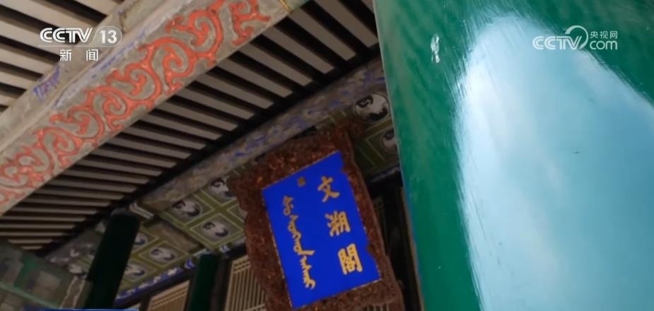 文溯閣為單檐建筑,因在底層前后又增加通廊,便又多出一個(gè)腰檐。按照慣例,門額應(yīng)該懸掛到頂層檐下。但是,文溯閣門額卻被懸掛在下層腰檐內(nèi),并且這個(gè)牌匾形體碩大,比沈陽(yáng)故宮其他門額要大出好幾倍,與清代宮廷建筑規(guī)制并不相符。