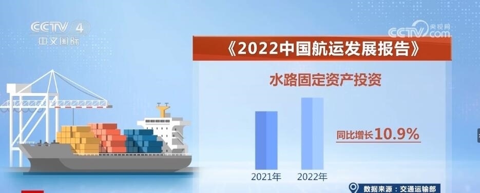 中國是海洋大國、航海大國、造船大國,作為全球最大貨物貿(mào)易國和第二大經(jīng)濟(jì)體,中國約95%的進(jìn)出口貿(mào)易貨物量通過海運(yùn)完成,港口規(guī)模、船員數(shù)量、造船產(chǎn)量等位居世界前列。交通運(yùn)輸部今天發(fā)布的《2022中國航運(yùn)發(fā)展報告》顯示,2022年,國家重大水運(yùn)基礎(chǔ)設(shè)施建設(shè)步伐加快,水路固定資產(chǎn)投資同比增長10.9%,水路貨運(yùn)量、港口貨物吞吐量、港口集裝箱吞吐量同比分別增長3.8%、0.9%、4.7%,集裝箱鐵水聯(lián)運(yùn)量同比增長16.0%。截至2022年底,中國海運(yùn)船隊(duì)運(yùn)力規(guī)模達(dá)3.7億載重噸,較十年前增長一倍,船隊(duì)規(guī)模躍居世界第二。