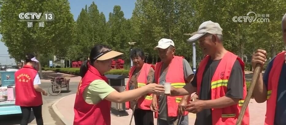 在德州市陵城區(qū),當地設置了歇腳驛站,為戶外工作者提供納涼的地方。同時,志愿者們走進田間地頭、街頭巷尾,為戶外工作者們送去綠豆湯、礦泉水等解暑降溫物品。