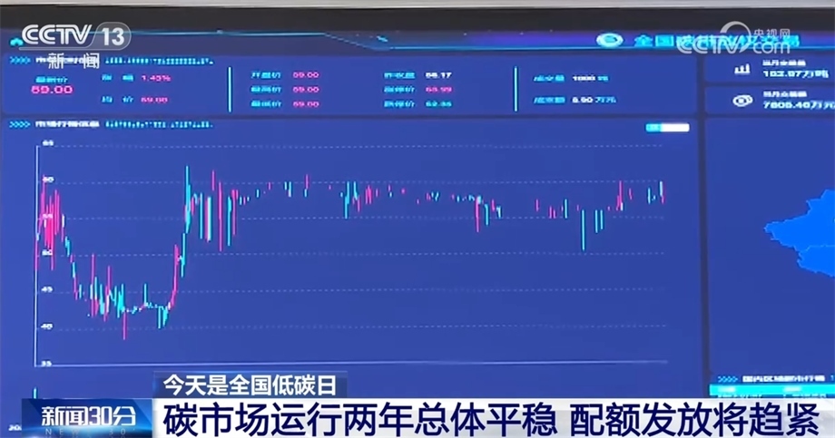 此外,我國利用市場機制控制和減少溫室氣體排放,成立了全國碳排放權交易市場,近兩年時間累計成交量2.38億噸,累計成交額109.1億元。專家介紹,隨著碳市場運營步入正軌,碳配額的發(fā)放將逐步收緊,促使參與交易的企業(yè)調整能源結構,有效控制和減少排放。