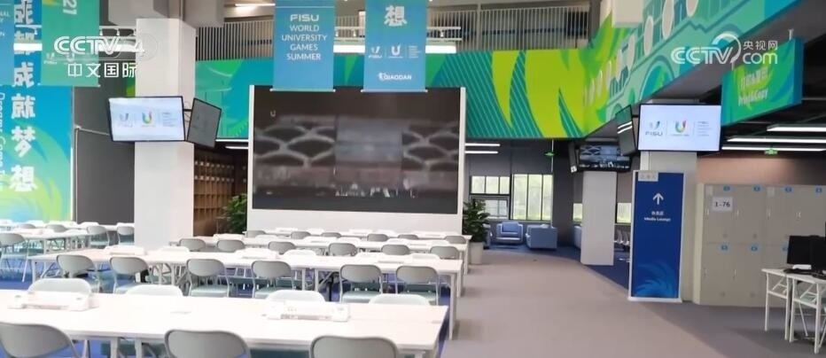總臺記者 蔣林:我現(xiàn)在就在成都大運會的主媒體中心,它與在大運會當中承擔開幕式的東安湖主體育場和火炬塔隔東安湖相望。我身后的這座建筑有一個非常好聽的名字,叫做東安書院。這是因為在成都大運會結束之后,這里將會變身成為成都東部地區(qū)面對市民開放的一座公共圖書館。而現(xiàn)在一直到比賽的賽會期間,這里就是成都大運會的主媒體中心。它有兩大職能,分別是主新聞中心和國際廣播中心。今天這里將會對媒體試開放,我們一起去看看里面現(xiàn)在準備好了嗎?