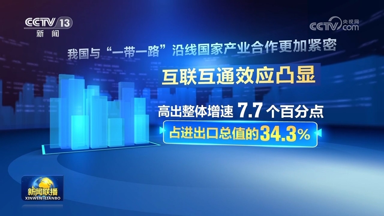 我國與“一帶一路”沿線國家產(chǎn)業(yè)合作更加緊密,互聯(lián)互通效應(yīng)凸顯,進出口同比增長9.8%,高出整體增速7.7個百分點,占進出口總值的34.3%。