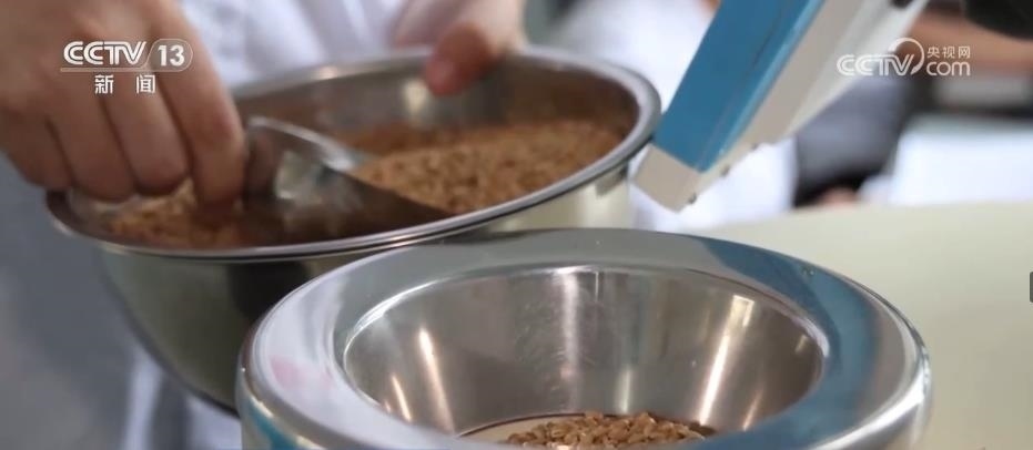 在山東夏津縣一家面粉加工企業(yè),工作人員正對2023年新收的小麥進行容重和蛋白質含量檢測。結果顯示,與往年相比,這兩個指標均有提升。