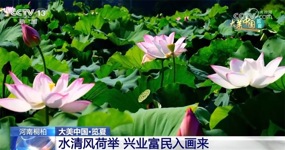 盛夏時節(jié),河南桐柏縣的兩萬余畝荷田迎來了一年中最美的季節(jié)。從空中俯瞰,藍(lán)天白云之下,青翠的稻田與荷田相映成趣,沿著彎曲的河流交錯分布,青山依依、碧水潺潺、煙波浩渺、荷葉田田,美不勝收。一株株荷花裊娜地開著,以粉紅色為主,或鵝黃或潔白,一幅絕美的鄉(xiāng)村生態(tài)畫卷徐徐展開。據(jù)了解,目前桐柏荷花主要有藕蓮、花蓮等多個品種類群。當(dāng)?shù)卣e極探索農(nóng)旅融合發(fā)展模式,在開展觀光旅游度假的同時,蓮產(chǎn)業(yè)已成為群眾增收的新途徑。