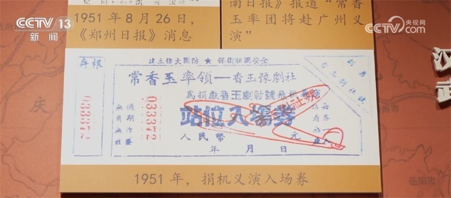 從1951年8月到1952年2月,香玉劇社行程萬里,義演了170多場(chǎng),從劇社成員到普通觀眾,大家踴躍捐獻(xiàn),在半年的時(shí)間里實(shí)現(xiàn)了義演募捐15.2億多人民幣(舊幣)的計(jì)劃,順利完成了向中國人民志愿軍捐獻(xiàn)戰(zhàn)斗機(jī)的愛國行動(dòng)。