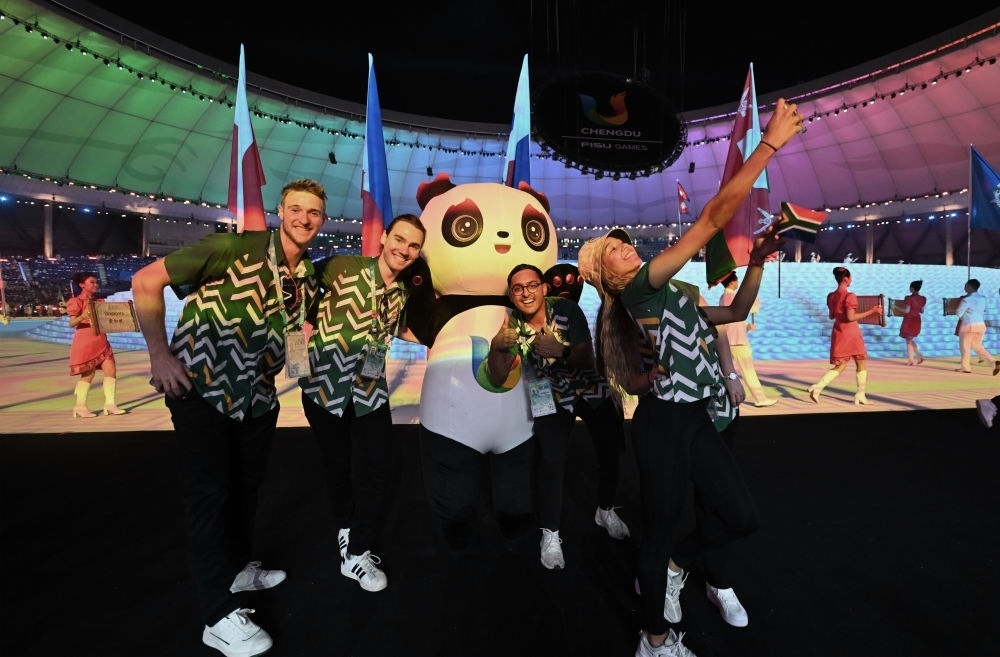南非大學(xué)生體育代表團在開幕式上入場。