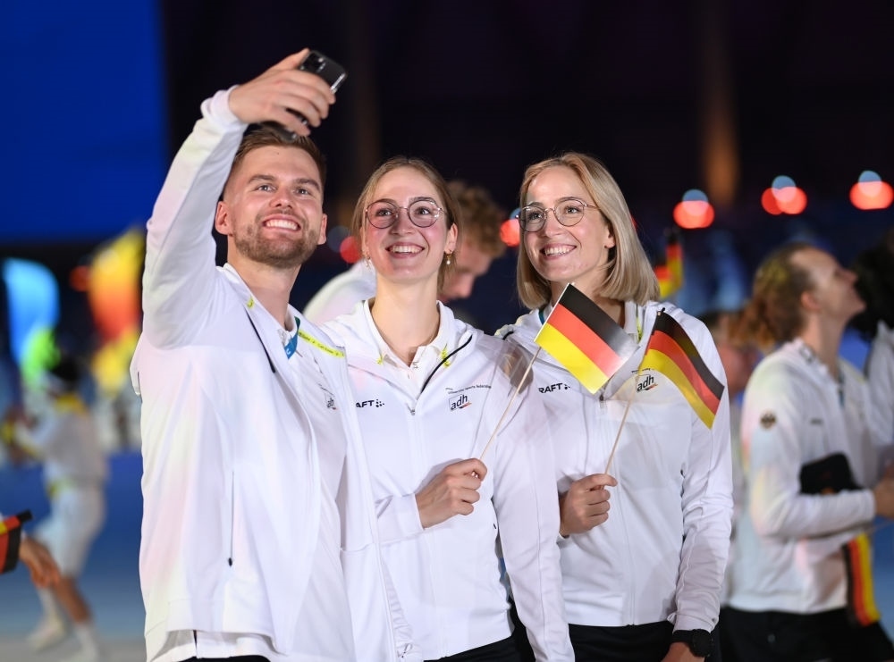 德國大學(xué)生體育代表團在開幕式上入場。