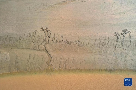 近日,隨著黃河調(diào)水調(diào)沙結(jié)束,黃河河南省開封市黑崗口險(xiǎn)工段水位下降。河床被水流沖刷過(guò)后呈現(xiàn)出縱橫交錯(cuò)的“脈絡(luò)”。