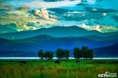 云南麗江,黃昏時分,拉市海風光旖旎。